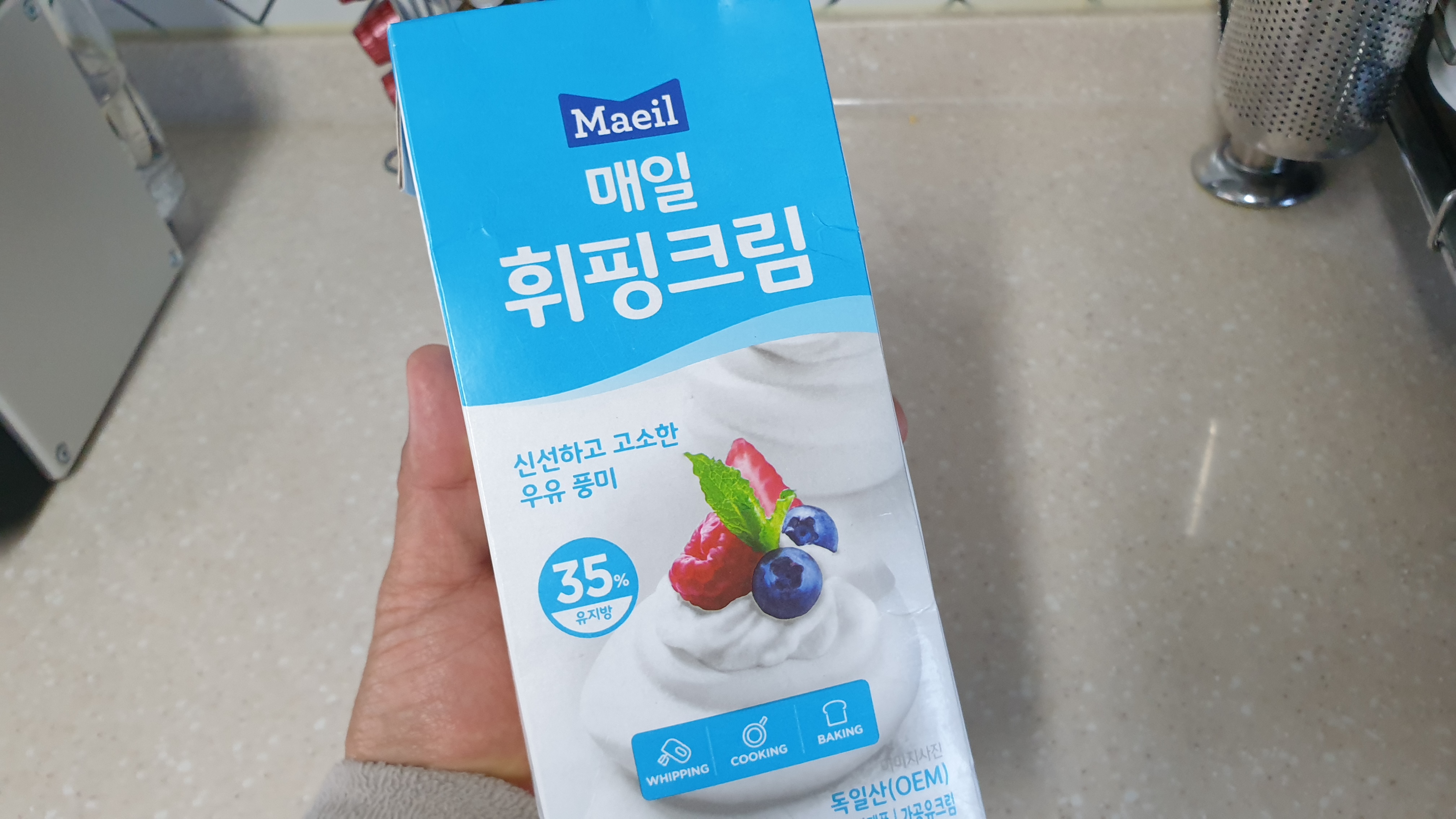 드디어 이 포스팅의 가장 포인트가 될 물 비율을 말씀드릴게요.. 우선 저는 물을 넣지 않습니다.. 물 대신 휘핑크림을 넣으면 계란찜의 '부들부들'을 넘어서 '보슬보슬'에 가깝고 고소함의 싸대기를 후려치거든요.. 그런데 말입니다.. 유통기한만 믿고 있다가 된통 당했습니다.. 맞습니다 상했습니다..ㅠ.ㅜ 아쉬운 대로 우유로 대체!!