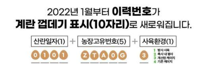 계란을 사면 제일 먼저 껍데기를 봐야 합니다.. 껍데기에 이 계란의 생산 유통 이력이 10자리로 표시되어 있기 때문이죠.. 맨 위의 네 자리는 산란일자를 의미합니다.. 이 계란은 1월 17일 날 산란이 된 제품이네요.. 그다음 다섯 자리는 생산농장 고유번호를 뜻합니다.. 지역에 따라 할당된 번호가 있는데 이 부분은 소비자에게 크게 영향이 없으므로 패쓰~ 마지막 한자리가 중요한데 사육환경을 뜻합니다.. 방사사육이 1번, 축사 내 평사에서 사육이 2번, 개선된 케이지에서 사육이 3번, 마지막으로 기존의 케이지에서 사육된 닭에서 나온 제품에게는 4번을 부여합니다..