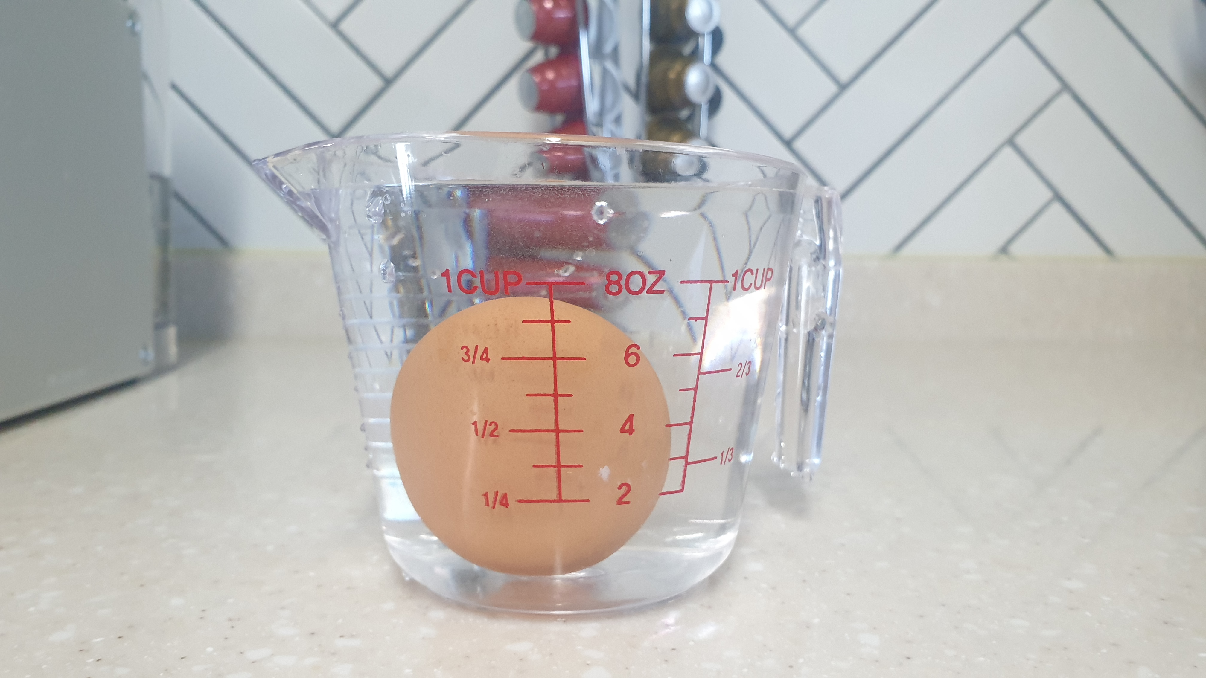 신선한 달걀을 구분하는 한 가지 팁을 더 드리자면 물에 담가 보시라고 권할게요.. 신선한 달걀은 위 사진처럼 달걀 내부에 공기 부분이 아주 적어서 그릇의 바닥으로 가라앉아 옆으로 누워집니다.. 시간이 지나면서 달걀 내부에 공기가 차지하는 부분이 넓어지면서 뭉특한 부분에 있는 공기가 위로 올라가려 하기 때문에 뾰족한 부분이 아래로 향하면서 서있는 형태로 됩니다.. 이쯤 되면 신선한 달걀은 아니니 아깝지만 폐기하셔야 합니다.. ㅠ.ㅜ
